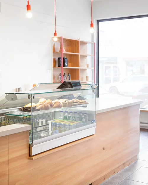 Our design approach was to embrace the building’s industrial past and to combine many of the original restored elements with modern touches. Drywall clad beams and columns were stripped to reveal industrial steel members throughout the space and the original steel doors to the walk-in fridge were sent off site to a car repair shop for refinishing.
