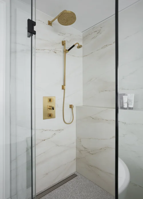 The owners of this beautiful Victorian Home desired to create an adult retreat in the existing attic space. The dropped ceiling was removed to reveal extra height and the tired 80s bathroom was completely reconfigured into a luxurious ensuite.